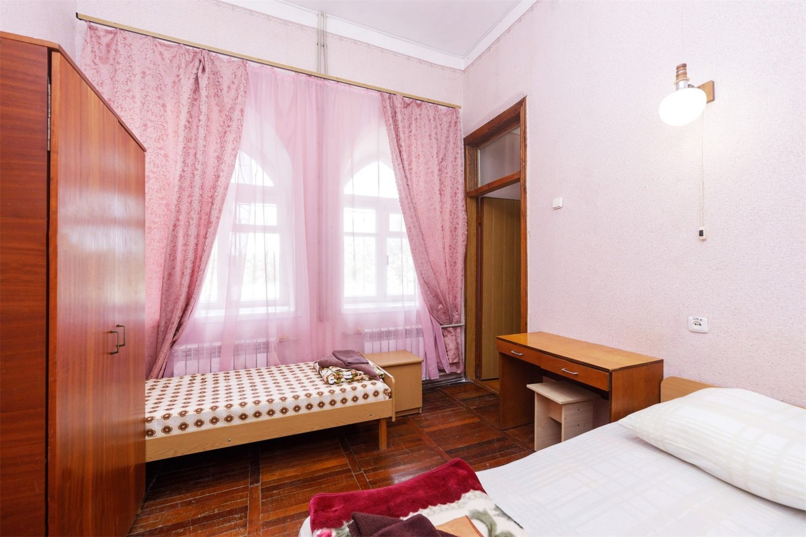 Номер двухместный однокомнатный в корпусе номер 15 "Комфорт". Небольшой 2х местный номер. В номере возможно разместиться 3му человеку (по запросу). Так же в холле корпуса есть гладильная комната и кулер с водой. В номере есть вся необходимая гостиничная мебель,телевизор с плоским экраном и кондиционер. На всей территории корпуса работает бесплатный WI-FI. Обслуживание номеров: уборка номеров, смена постельного белья, смена полотенец -раз в 3 дня или по запросу .Санаторий владеет своим пляжным участком, предназначенным только для отдыхающих здравницы. Расстояние от корпуса до береговой линии составляет 550 метров.