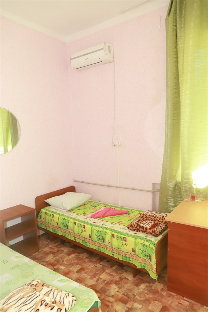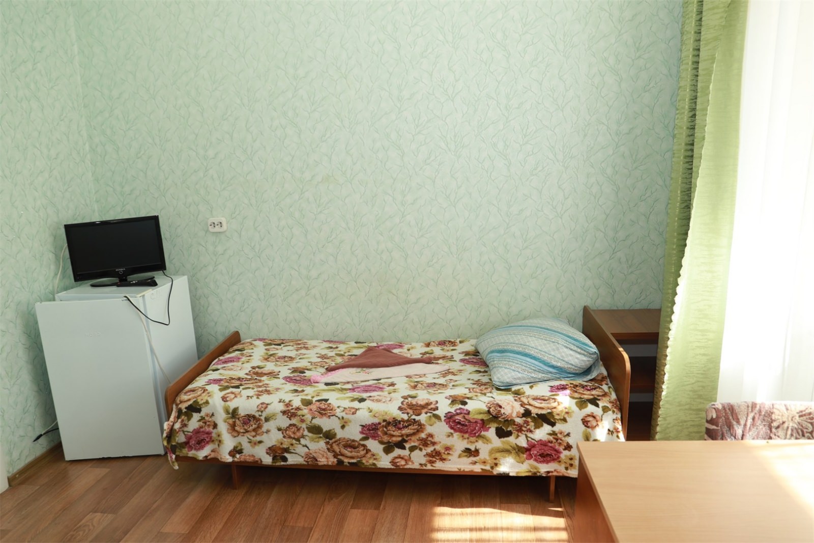 Номер двухместный однокомнатный с удобствами в номере в корпусе номер 13 (2х этажное здание). Так же в холле корпуса есть гладильная комната и кулер с водой. В номере есть вся необходимая гостиничная мебель,телевизор с плоским экраном и кондиционер. На всей территории корпуса работает бесплатный WI-FI. Обслуживание номеров: уборка номеров, смена постельного белья, смена полотенец - 1 раз в 3 дня или по запросу.Санаторий владеет своим пляжным участком, предназначенным только для отдыхающих здравницы. Расстояние от корпуса до береговой линии составляет 550 метров.